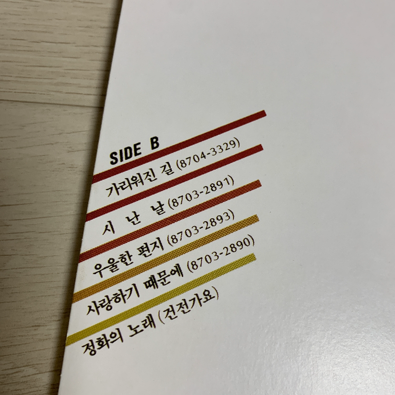 아쉽게도 원판 뒷면 제목에 인쇄가 잘 못 된 부분이 있다. 바로 대표곡인 지난날이 '시난날'로... 편집 과정에서 무언가 잘못된 게 아닌가 생각된다. 제작사에서 무언가 조치가 있길 기대해 봅니다.