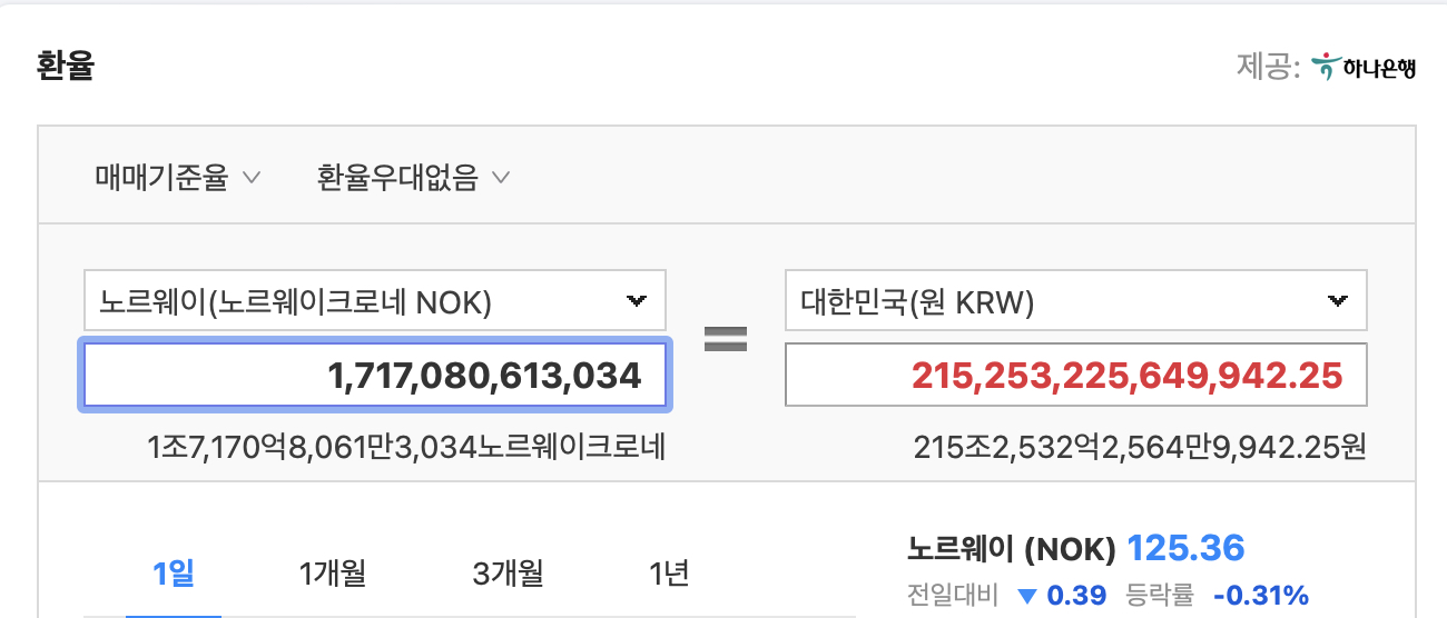 저 수치를 아래 환율 계산기에 대입해 봤더니...